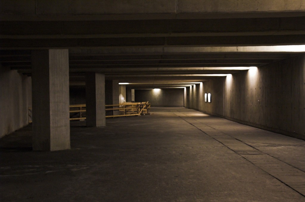 Zwischenebene. Auf der gleichen Höhe 10 Meter weiter links ist die reguläre U-Bahn-Station HBF, Blickrichtung ist nach Süden. Hinten links gehts runter in die Geisterstation.