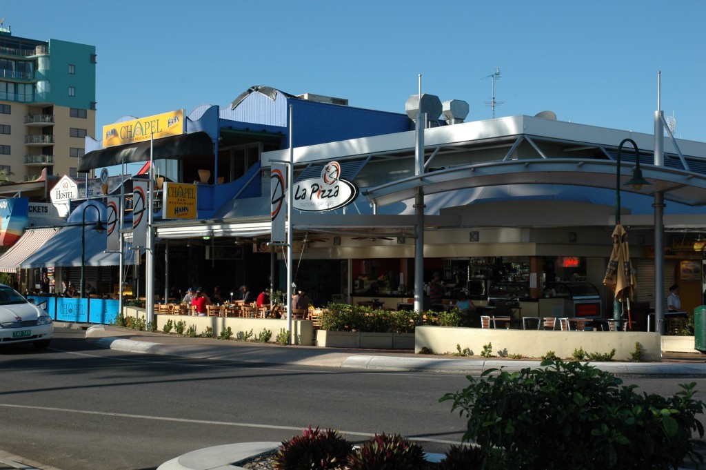 Regenwald Auf der Heimfahrt wirds schon ziemlich duster, und ich erinnere mich an die Warnung meines Reiseführers, nicht bei Nacht zu fahren. Halte daher besonders aufmerksam Ausschau nach irgendwelchen Tieren auf der Fahrbahn, begegne aber keinen. Cairns ist abends um 19:30 ein typisches Touristenstädchen: