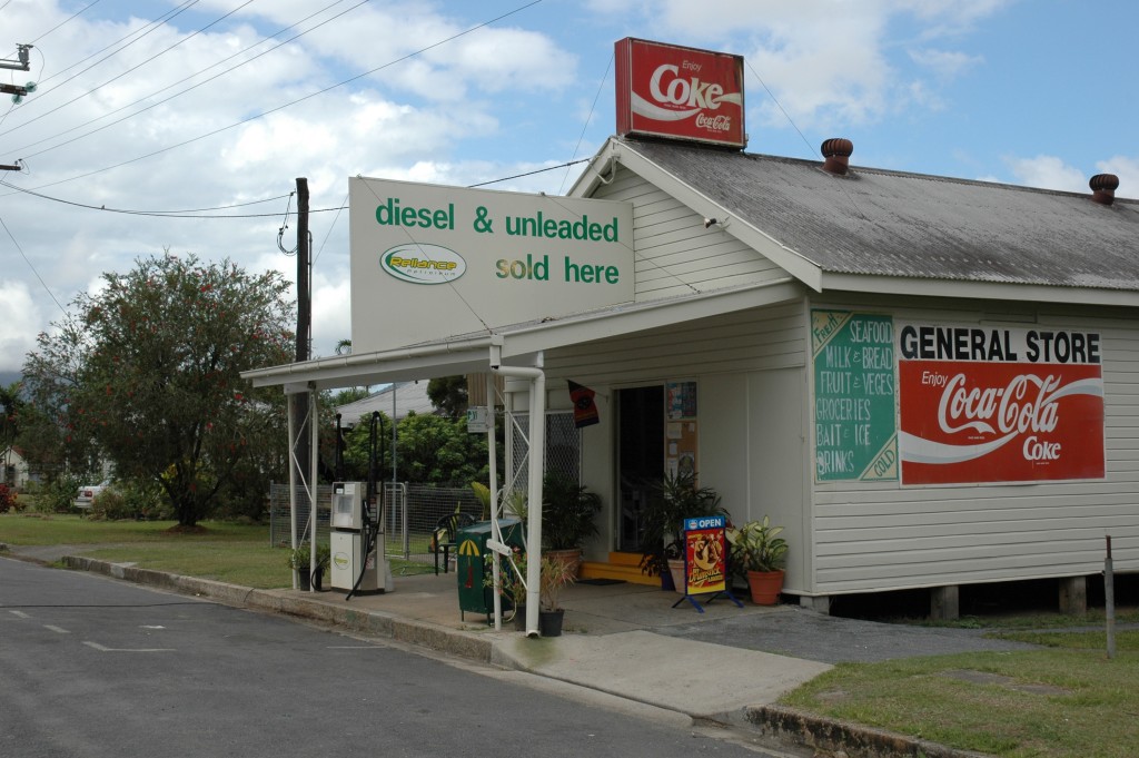 Häuser. Ich halte an einem kleinen Laden an, um mir eine Flasche