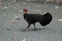 Truthähne(?) mit dem roten Kopf und dem gelben Hals .
