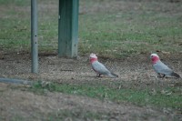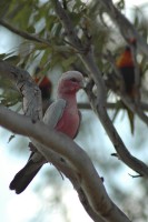 rosafarbige Papageien (?) mit grauen Flügeln , ein paar von den
