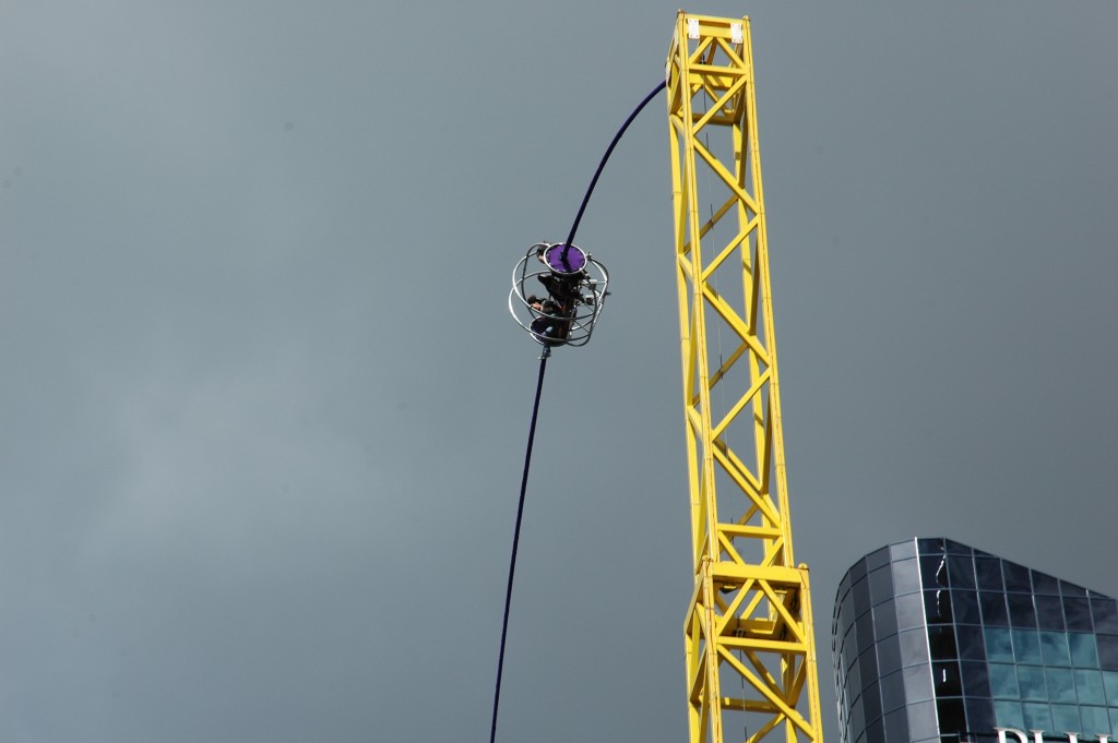von dem Turm runterspringen, wenn man mag; an einem Seil