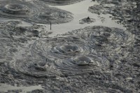 Geysir Der Kiwi ist ein Laufvogel, der nicht fliegen kann, und nachtaktiv. In dem Kiwi-Haus ist es daher stockfinster, und Fotografieren streng verboten. Dass man die armen Viecher nicht anblitzen darf, sehe ich ja ein, aber so gar kein Foto? Ich schraube verstohlen die Empfindlichkeit meiner Kamera auf ISO 1600 hoch und stelle fest, dass das Licht immer noch bei weitem nicht ausreicht. Dann soll es wohl wirklich nicht sein, das Foto. Aber nachdem sich meine Augen an die Dunkelheit gewöhnt haben, kann ich immerhin einen Kiwi dabei beobachten, wie er mit seinem langen Schnabel auf dem Boden rumpickt und anscheinend nach Nahrung sucht. Die nächste Station ist ein Loch mit blubberndem, grauem