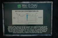 Foto Am Visitor Center kann ich mir nicht verkneifen zu fragen, ob das denn mit rechten Dingen zugeht, dass der Geysir jeden Tag genau um 10:15 sprüht. Vor den anderen herumstehenden Gästen bekomme ich dazu nur den Spruch zu hören, dass es eben ein besonders schlauer Geysir ist. Aber auf dem Weg nach draußen nimmt sie mich beiseite und erklärt mir, dass hier in der Tat ein bisschen nachgeholfen wird. Der Geysir würde von Natur aus etwa einmal am Tag ausbrechen, man wüsste nur nicht, wann. Daher kippen sie jeden Tag um 10:15 ein bisschen Seife rein, damit die Besucher ein verlässliches Schauspiel haben. Das Ganze ist natürlich total umweltfreundlich und unschädlich. Dachte ichs mir doch. Ich verkneife mir die Frage, ob man denn noch eine Sondervorstellung für Spätaufsteher buchen kann, und steige zufrieden in mein Auto. Ich glaube, der Geysir würde mir irgendwie nicht ganz so viel Spaß machen, wenn ich wüsste, dass er künstlich ausgelöst wird. Auch wenn er an sich echt ist. Ich beschließe, in Taupo zu übernachten, laut meinem
