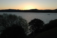 großen See, den man schon vom Ortseingang aus sehen kann Ich schreibe in meinem Zimmer ein Stündchen Tagebuch, bis mir der Magen knurrt. Als ich vor die Tür trete, staune ich über einen total klaren Sternenhimmel, der besonders gut zur Geltung kommt, da der Innenhof des Motels so gut wie unbeleuchtet ist. Ich stelle allerdings fest, dass ich da oben am Himmel überhaupt nichts erkenne, was natürlich kein Wunder ist auf der anderen Seite der Welt. Nicht, dass ich ein großer Hobbyastronom wäre, aber den Polarstern finde ich zu Hause schon, wenn ich nach oben schaue. Ich schaue spontan im Büro des Motels vorbei und wende mich mit einer ungewöhnlichen Bitte an die Landlady: Ob sie mir wohl die Sterne erklären kann? Ich störe sie anscheinend gerade beim Abendessen, und sie sagt, dass ihr Mann sich mit sowas viel besser auskennt. Wir verabreden, dass ich nach dem Essen noch einmal klingle. Ist mir jetzt fast peinlich, der Aufstand, aber egal. Das Abendessen nehme ich heute mal in The Brantry Restaurant direkt gegenüber von meinem Motel ein, das mir die Landlady als sehr gut, aber auch very expensive empfohlen hat. Nach dem unspektakulären Kneipenessen vorgestern und dem eher bescheidenen Chinesen gestern möchte ich es mir mal gutgehen lassen, außerdem finde ich es praktisch, nicht mehr weit laufen oder gar fahren zu müssen. Recht vornehm, sehr leckeres Essen, leckerer Wein. Ich bezahle allerdings so viel für das Abendessen wie für die Unterkunft. Aber man gönnt sich ja sonst nichts. Und wenn ich so überlege, was ich manchmal so in Hannover im Gim lasse, dann ist das hier durchaus als preiswert zu bezeichnen. Wie verabredet, klingle ich gegen 21:30 nochmal am Office, und Ron erklärt mir, wie man das Southern Cross findet. Ist in der Tat eine ziemlich markante Formation (ja, Peterchen, jetzt weiß ich endlich Bescheid). Er weiß außerdem zu erzählen, dass der rechte obere von den "pointer stars" in Wirklichkeit aus drei Sternen besteht, von denen man zwei mit dem Teleskop unterscheiden kann. Da ich ihm aufmerksam zuhöre, bietet er an, sein Teleskop zu holen. Aber nur, wenn es keine Umstände macht; ich bin ja nun wirklich kein Astronom. Er hat tatsächlich ein dickes Teleskop in seiner Garage, auf einem schweren, stabilen Stativ. Als das aufgebaut ist, braucht er eine ganze Weile, um es auszurichten, aber dann kann ich tatsächlich zwei strahlende Lichtpunkte eng beieinander erkennen. Und ganz viele andere Sterne drumrum, die man mit bloßem Auge nicht sieht. Wir schauen anschließend noch ein bisschen den Mond an, und Ron sinkt in meiner Achtung wieder ein bisschen, als er nicht sagen kann, ob wir gerade zu- oder abnehmenden Mond haben (ich glaube, das ist auf der Südhalbkugel auch andersrum als zu Hause, also müsste gerade zunehmender Mond sein). Jedenfalls kann man die Krater auf dem Mond sehr schön erkennen mit dem Teleskop; als er das Okular wechselt, ist der Mond sogar größer als "bildfüllend". Das ist ja ein toller Service gewesen, und das alles im Preis der