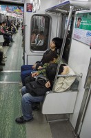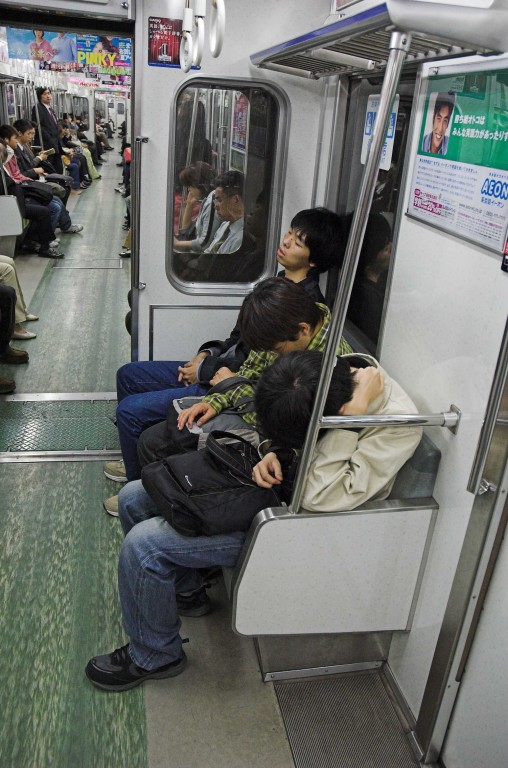 der U-Bahn sieht oft schlafende Japaner, hier mal drei auf einen