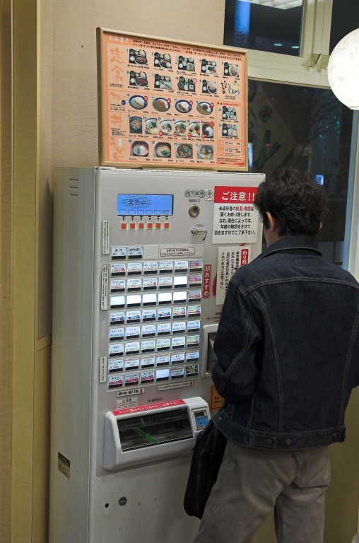 drinnen an einem Automaten sein Essen zu bezahlen und zu