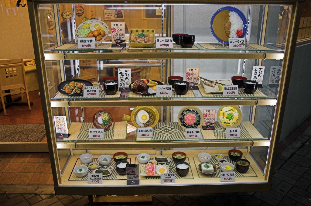 Plastikimitationen der Gerichte im Schaufenster sehen kann . Dann merkt man sich so