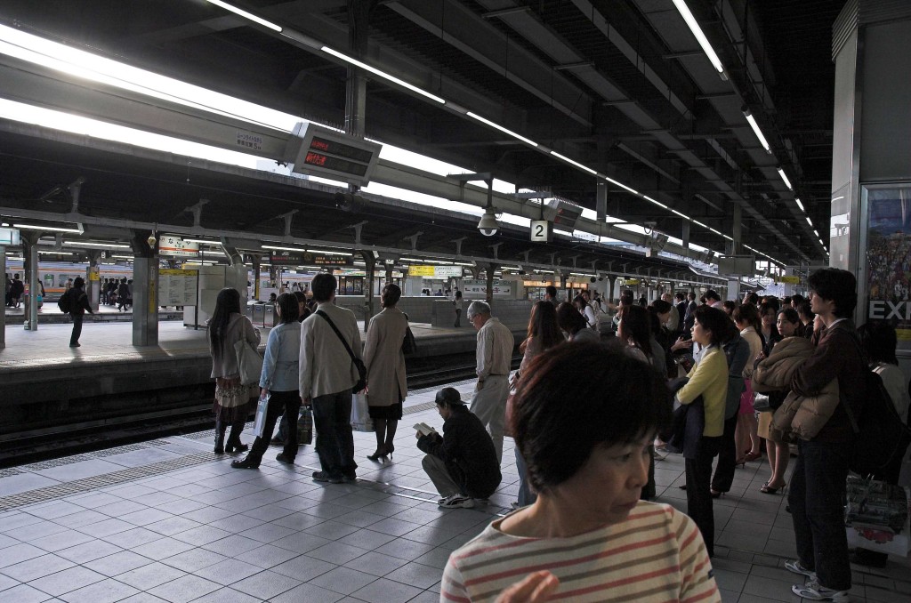 An Gleis 2 stehen schon ordentliche Schlangen von Japanern zum