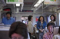 gegenüber sitzt eine Japanerin, die auf ihrem Handy herumtippt.