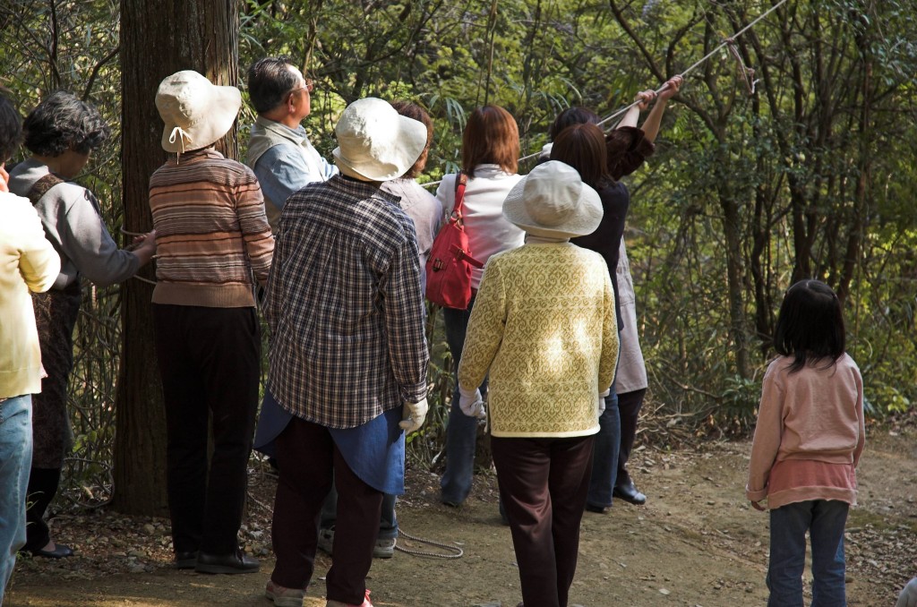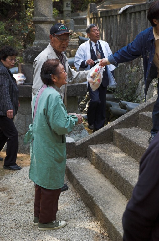 Rückweg. Einige betreten aber noch den Schrein, und Katsuaki san