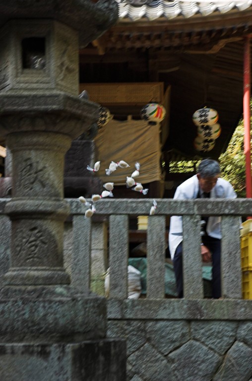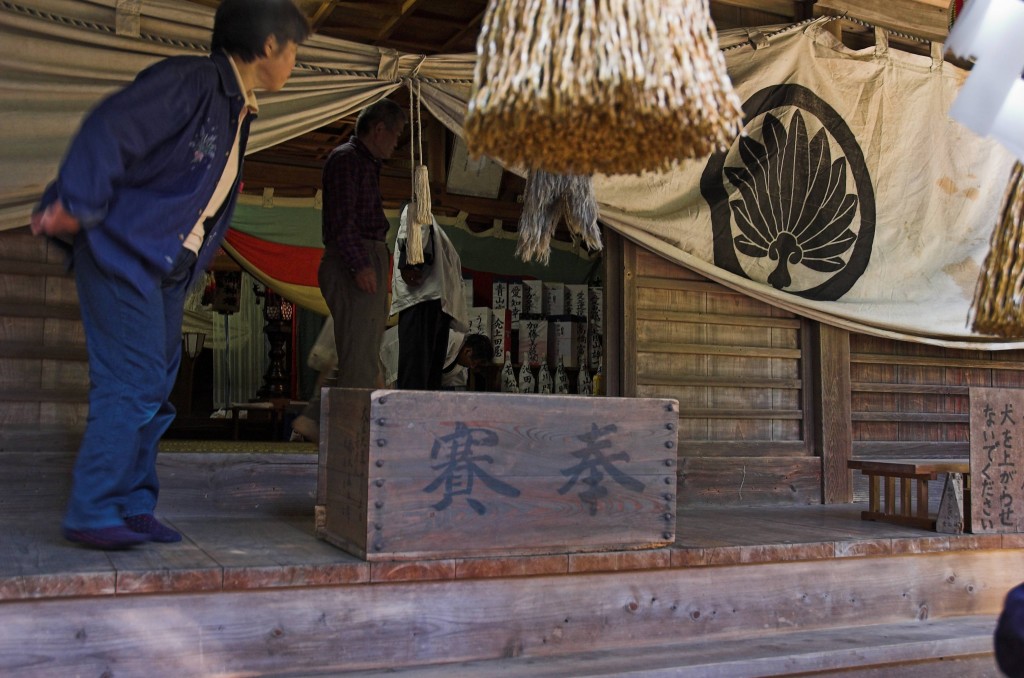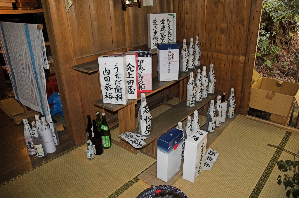 Auf der rechten Seite stehen noch etliche Sake-Flaschen , ob das Opfergaben sind?