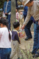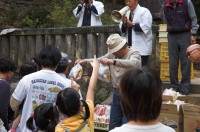 Kinder betet und bei dem Reiskuchen in die Menge geworfen werden. Die