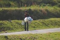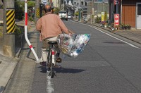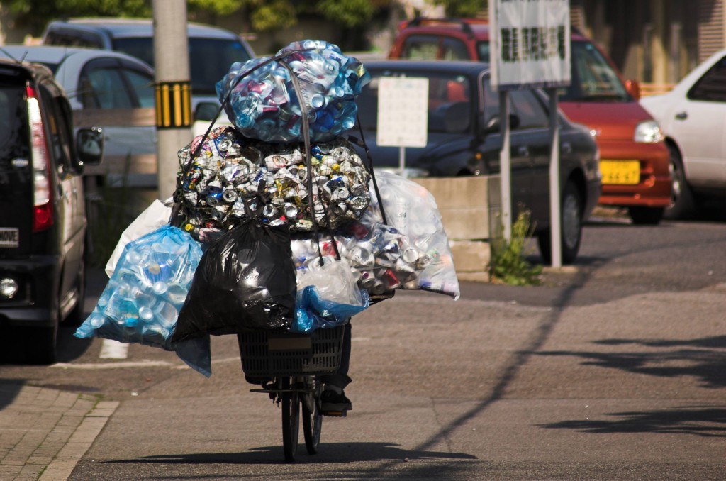 der Fahrt ein Foto von einem Müll wegbringenden Radfahrer Schon seit einigen Tagen fällt mir auf, dass auf immer mehr