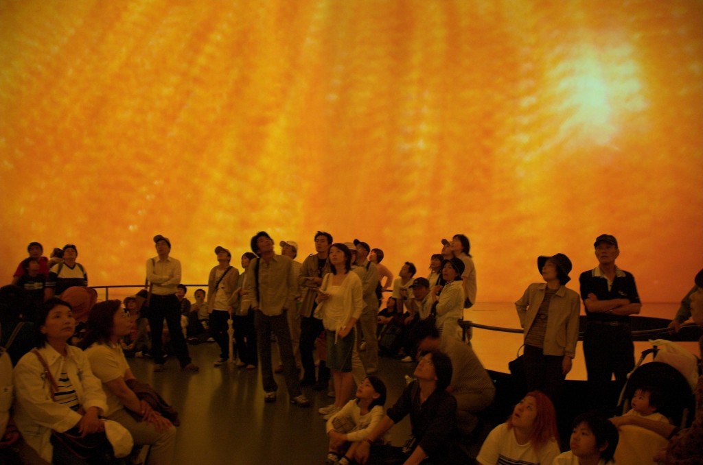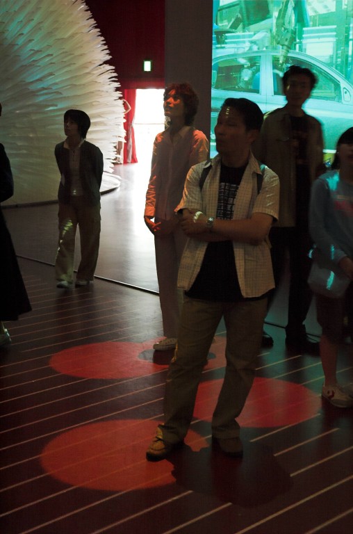 großen Fläche wird auf jeden Besucher ein Spot projiziert,