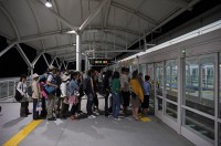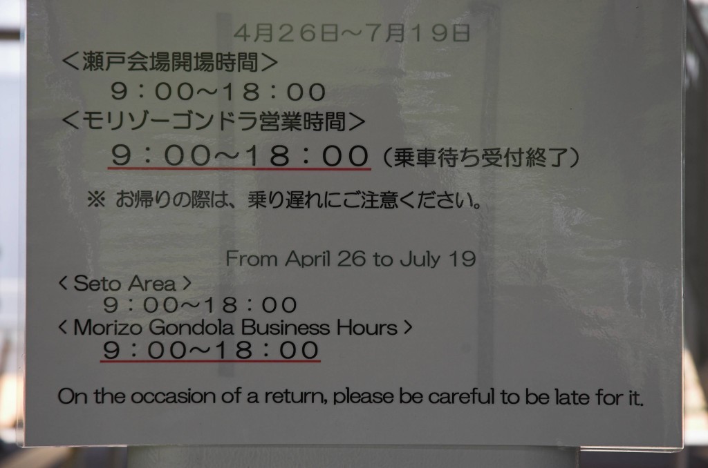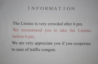 Schild, das dazu rät, die Linimo doch bitte vor 18 Uhr zu nehmen,