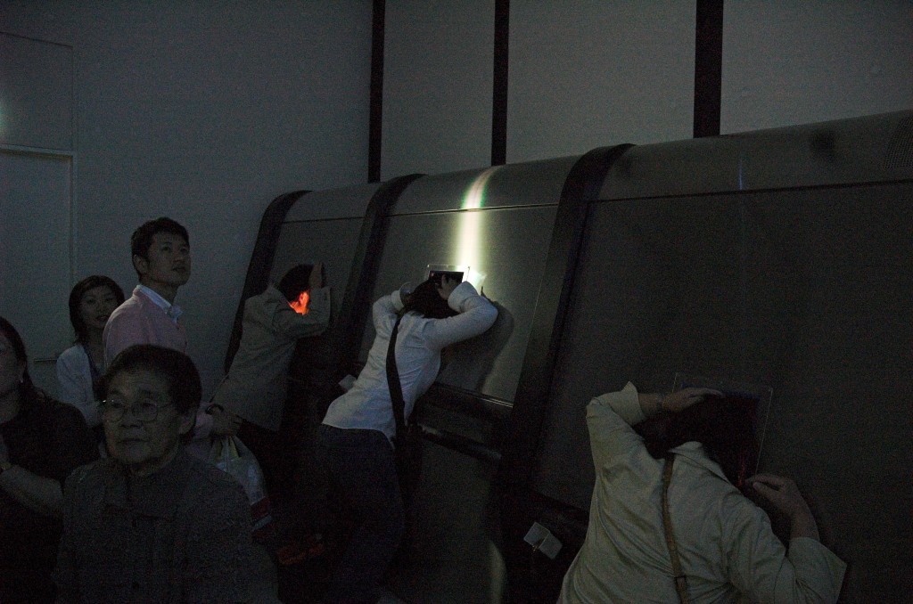 3D-Scannern, die der Reihe nach alle Zuschauer erfassen . Man steckt dazu den Kopf