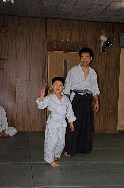 Heute darf ich mit Katsuaki san und Keiko san zum Aikido-Training,