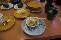 Schälchen von dem Eierglibber mit fischigen Sachen drin, dessen