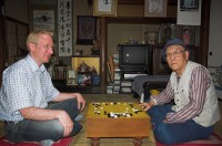 anderen Zimmer, vor seinem Goban sitzend. Wir unterhalten uns erst
