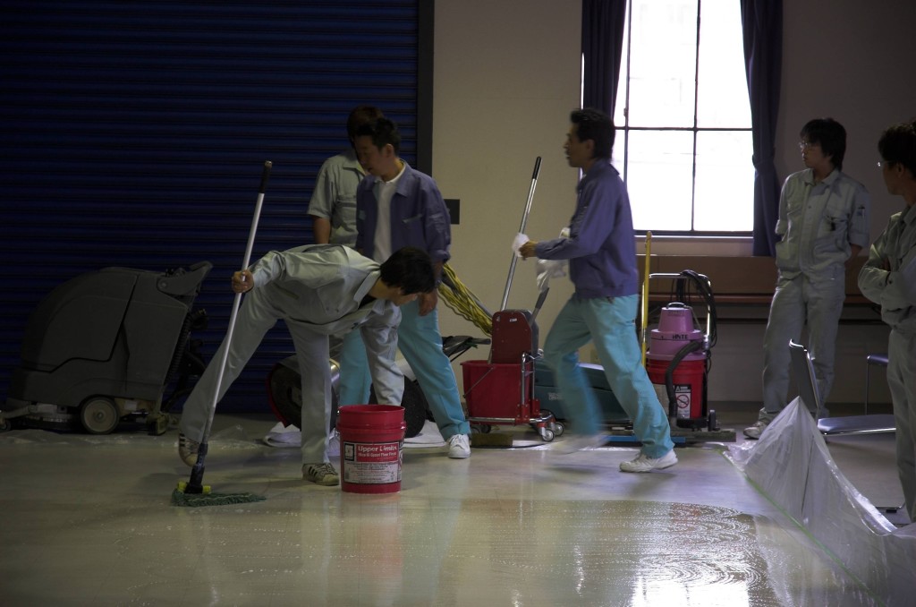 Boden fläche ist abgesperrt und wird anscheinend gereinigt.
