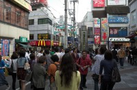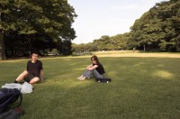 alle anderen benutzen die erlaubte Wiese im Hintergrund Nachdem sich Pamela verabschiedet hat, weil sie noch einiges in ihrer Wohnung zu tun hat, will mir Hiko nun doch seine Wohnung zeigen. Beziehungsweise fahren wir hin, weil er dort Gutscheine liegen hat, die er heute Abend für ein gemeinsames Abendessen einlösen will. Eigentlich hat er immer gesagt, dass es ihm nicht recht ist, einen auffälligen Ausländer mit dorthin zu nehmen, aber nun macht er doch eine Ausnahme. Die Ecke, in der er wohnt, liegt westlich von Shinjuku und ist ein