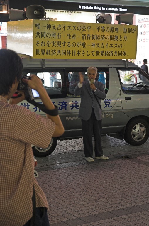 von Akihabara steht ein Lautsprecherwagen, und ein älterer