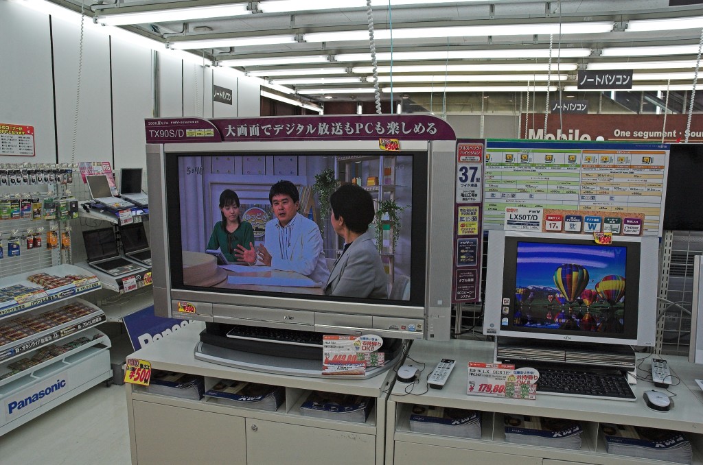 Tokyo, wo man alles kaufen kann, was elektrisch ist. Vor dem Bahnhof