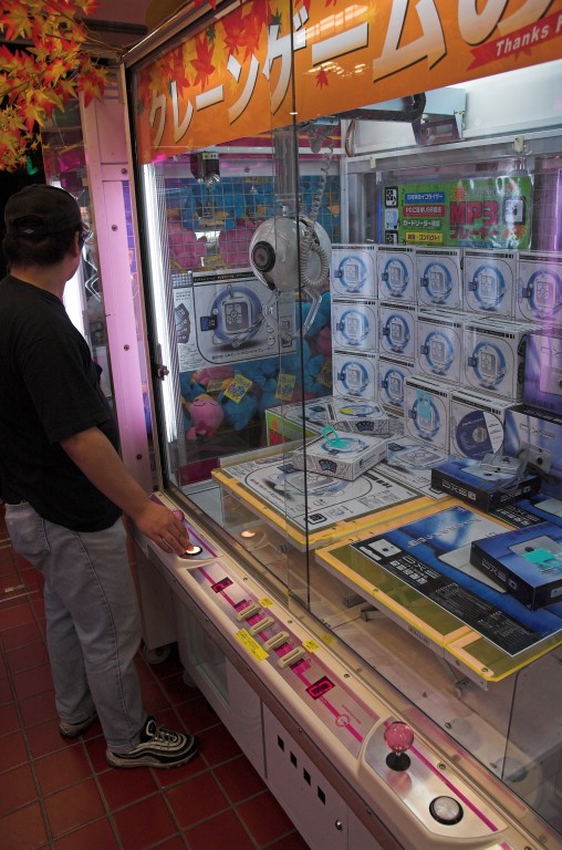 Für 200 Yen darf man den Kran in Position bringen, der dann auf