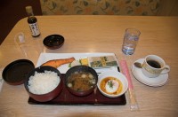 wieder das große japanische Frühstück mit gegrilltem Lachs .