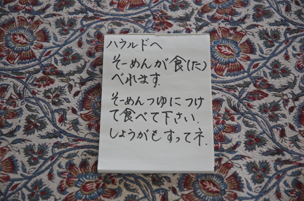 gesorgt: Auf dem Tisch liegt ein Zettel , dass ich Somen essen