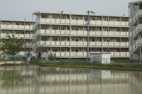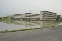kasernenhaftes Gelände mit abschreckend hässlichen Wohnsilos , daneben aber auch die