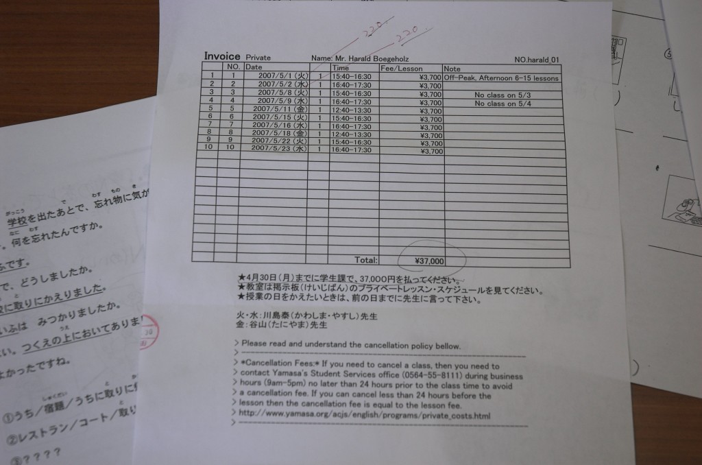 und drückt mir Stundenplan und Rechnung für meinen Einzelunterricht in