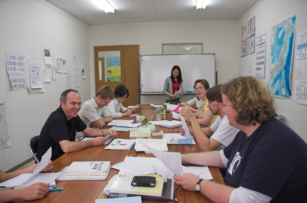 Prüfungsergebnisse. Erleichterte Gesichter rundum Wir sprechen die ganze Stunde lang detailliert die Aufgaben durch, was naturgemäß nicht allzu viele Überraschungen birgt, denn ich hatte ja so gut wie alles richtig. Und die Hälfte meiner Fehler waren noch schlichte Verschreiber (mal an einem Schriftzeichen die Tüpfelchen vergessen, mal aus Versehen zwei Zeichen doppelt geschrieben ... was halt so passieren kann, wenn man das Schreiben von Hand nicht so wirklich gewohnt ist). Die letzte Stunde ist nur noch ein Lückenfüller; wir schnuppern in die Schreibweise der Kanji hinein, was mir nun nach über einem Jahr intensiven Kanji-Studiums absolut überhaupt nichts bringt. Und für die anderen dürfte die Lektion auch nur von zweifelhaftem Wert sein. Aber gut, es ist ja nur eine Stunde. Nach der Schule verbringe ich die Zeit im aufenthaltsraum und will eigentlich meine Kanji wiederholen, aber irgendwie kann ich mich nicht recht konzentrieren. Draußen geht ein Wolkenbruch nieder, sodass es aber auch nicht recht in Frage kommt, irgendwo hinzugehen. So daddle ich halt ein bisschen im Internet herum. Irgendwie werde ich den Nachmittag über immer unzufriedener. Von meinen Kanji habe ich für meinen Geschmack viel zu viele wieder vergessen, aber fürs Wiederholen fehlt irgendwie die Konzentration. Und ich weiß immer noch nichts über mein weiteres Schicksal: Komme ich nun in eine höhere Klasse oder nicht? Gesagt hat man mir nichts. Ob ich mal fragen gehe? Gerade als ich mich so gräme, kommt Yoshiguchi-sensei (meine Klassenlehrerin) in den Raum, um sich einen Kaffee zu ziehen, sieht mich und spricht mich an: Ich habe ja sehr gut abgeschnitten und sei nur noch zwei Wochen da, ob ich mir zutrauen würde, in die höchste Klasse zu gehen? Ja sicher, darauf warte ich doch schon die ganze Zeit! Na gut, also dann ab morgen. Ich soll kurz warten, während sie mir noch einen Zettel mit dem Vokabular für morgen kopiert. Au Backe! 60 Vokabeln, die ich alle noch nicht kenne, mit lauter komplizierten Kanji und vor allem nur die nackten Wörter ohne Übersetzung. Ich muss sie also alle auch noch selbst nachschlagen. Das fängt ja gut an. Ein wenig mulmig ist mir schon zumute auf einmal, aber ich kann jetzt keinen Rückzieher machen. Vorbei sind die ruhigen Zeiten, in denen ich entspannt in den Unterricht gehen konnte, ohne vorher Vokabeln zu pauken. Aber da muss ich jetzt durch, ich habe es ja so gewollt. Beim Abendessen läuft wie üblich der Fernseher, doch zusätzlich kommt aus einer anderen Ecke der Klang eines Glockenspiels. Ich brauche eine Weile, um zu kapieren, dass das Gebimmel von CD kommt – auf dem Fensterbrett steht ein kleiner CD-Spieler. Also mein Geschmack ist das nicht. Für sich alleine wäre es ja noch zu ertragen, aber zusammen mit dem Fernsehton ist es schlicht akustische Umweltverschmutzung (in meinen Ohren). Mama und Nami gefällt es aber anscheinend, und den ebenfalls anwesenden Kyoutaro scheint es zumindest nicht zu stören. Abends heißt es weiter Vokabeln nachschlagen |