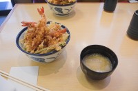 in Shinjuku, frittierte Krabben auf Reis, dazu Misosuppe . Anschließend gibts noch