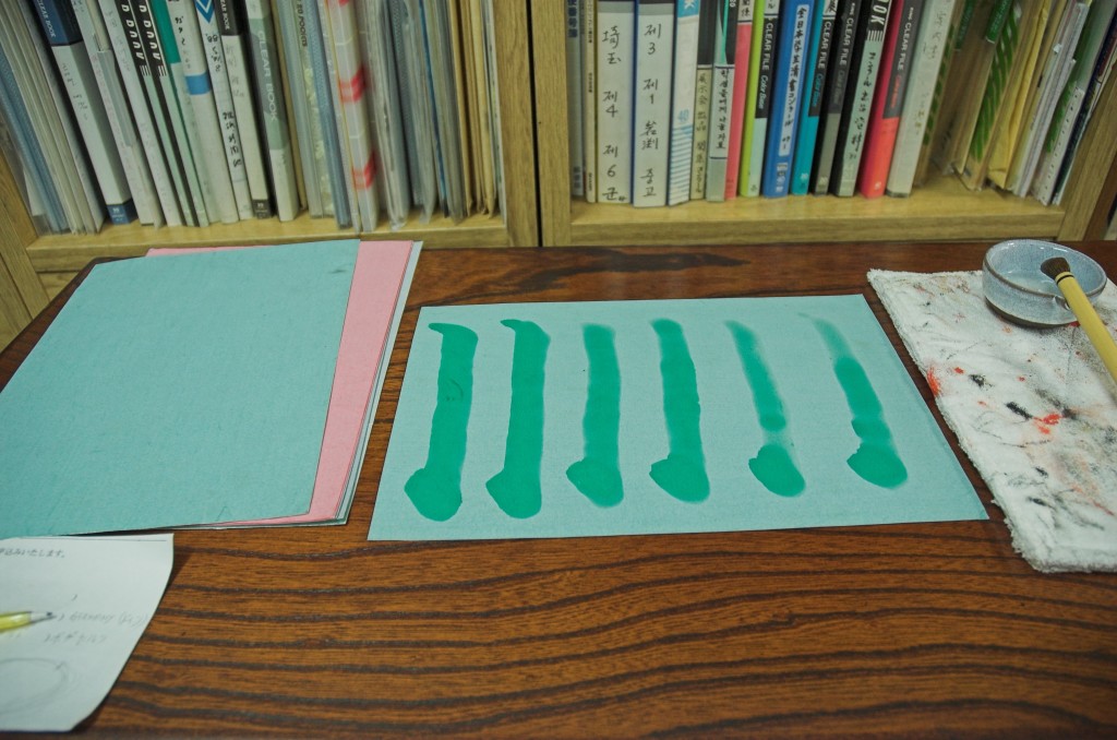 von ihren Eltern) Diesmal meint Chandra, ich sollte für den Kalligraphie-Unterricht etwas bezahlen: 1000 Yen kostet kengaku, eine Probestunde, und ich fülle dafür brav ein Anmeldeformular aus. Daran soll es nicht scheitern: umgerechnet 6 Euro für einen ganzen Nachmittag, das würde ich liebend gerne jeden Samstag bezahlen, wenn ich diese Schule nur vor meiner Haustür hätte. Nachdem wir die Meisterin förmlich begrüßt haben, darf ich wieder
