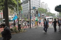 als ich draußen Blaulicht blitzen sehe. Eine kleine Tibet-Demonstraton