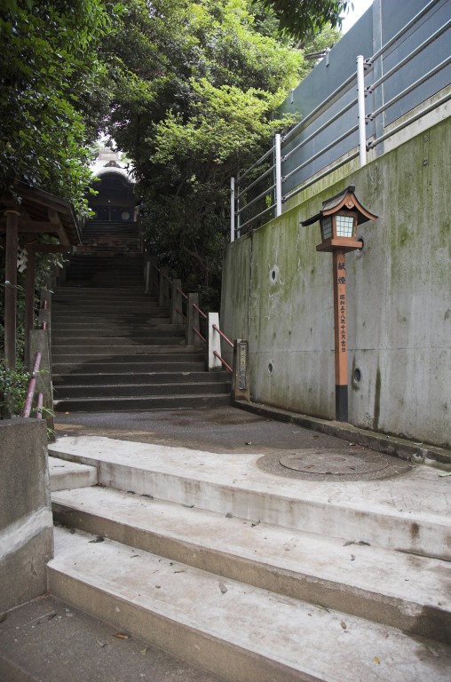 Treppe, die zu einem Schrein führt , ein ruhiger, besinnlicher
