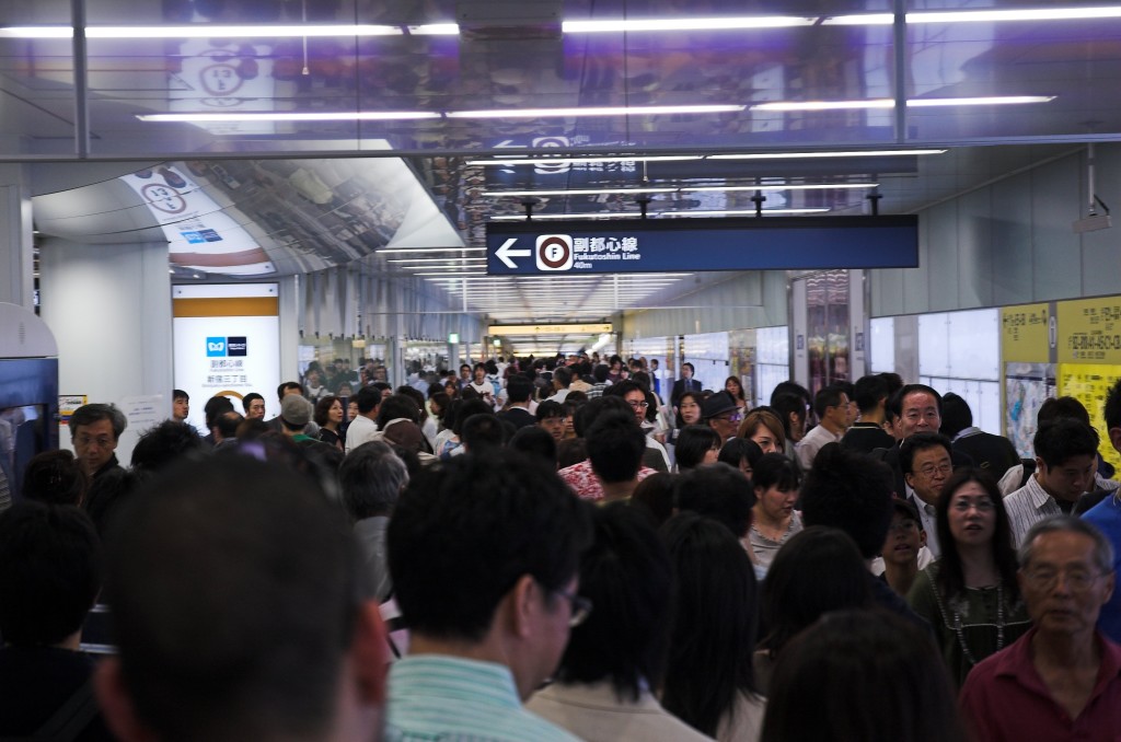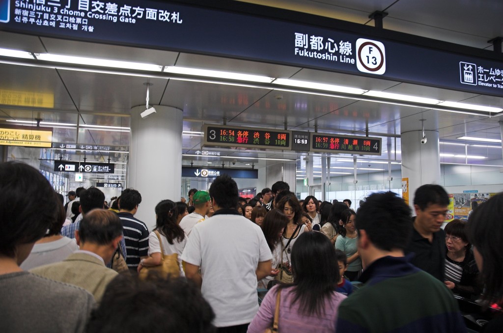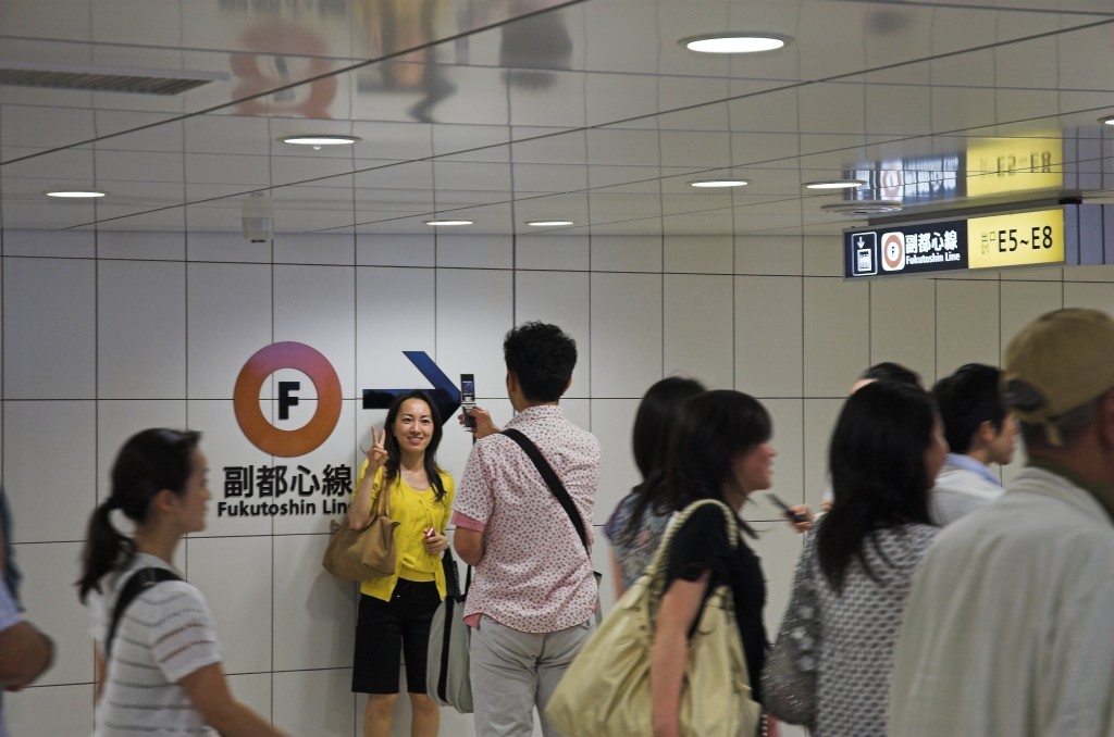 Treffpunkt Shinjuku West Was wollen wir machen? Hmm, keine Ahnung ... Hiko hatte doch erzählt, dass heute die neue U-Bahn-Linie eröffnet wird und das so ein großes Ereignis für die Tokyoter ist. Wollen wir mal fahren? Die Idee gefällt ihm sofort. Die nächste Station ist übrigens auf der Ostseite des Bahnhofs, nur wenige Schritte von dem Ort entfernt, wo wir uns sonst immer treffen. Da hätten wir uns das mit dem neuen Treffpunkt im Westen auch sparen können, aber gut. Jetzt haben wir auf beiden Seiten einen Treffpunkt. Es ist viel los am Bahnhof Shinjuku sanchoume In Shibuya haben sie die neue Station anscheinend unter die