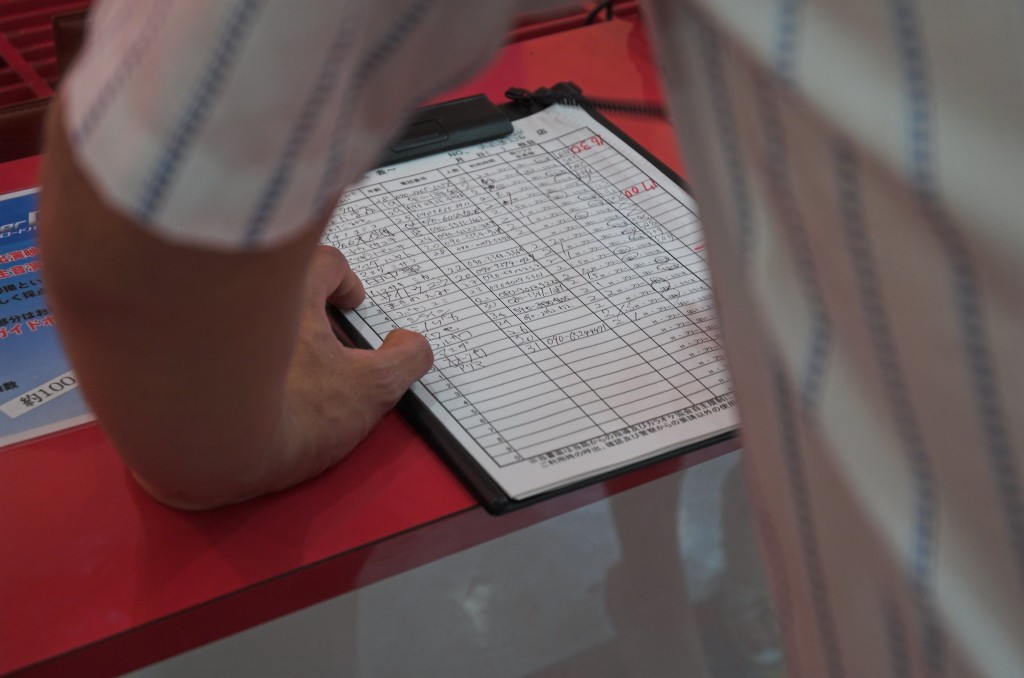 macht die freundliche Kellnerin im Kimono für uns Als wir so durch das nächtliche Shinjuku laufen Karaoke jetzt? Von mir aus. Aber wir müssen uns wieder in eine Warteliste eintragen und gehen so lange gegenüber in die nächste Kneipe. Zu meinem Erstaunen bestellt Hiko noch etwas zu essen, wo er das nur alles hinpackt? Noch mehr Essen, noch mehr Bier ... erst anderthalb Stunden nach der vereinbarten Zeit gehen wir zum Karaoke, und jetzt ist ein Zimmerchen frei. Im fünften Stock mit Aussicht (keine vernünftigen Bilder mehr, nur noch von der Handy-Knipse im Live-Foto-Log, z.B. hier). Ob dies wohl der Karaoke-Laden ist, wo die eine Szene aus Lost in Translation gedreht worden ist? Es kommt mir fast so vor, die Atmosphäre ist jedenfalls ganz genau so. Es macht mir wieder einmal großen Spaß, und wir singen bis nachts um 2. Dann sind natürlich definitiv all U-Bahn-Stationen und Bahnhöfe in Tokyo verrammelt, und man muss sehen, wo man die Nacht über bleibt ... |