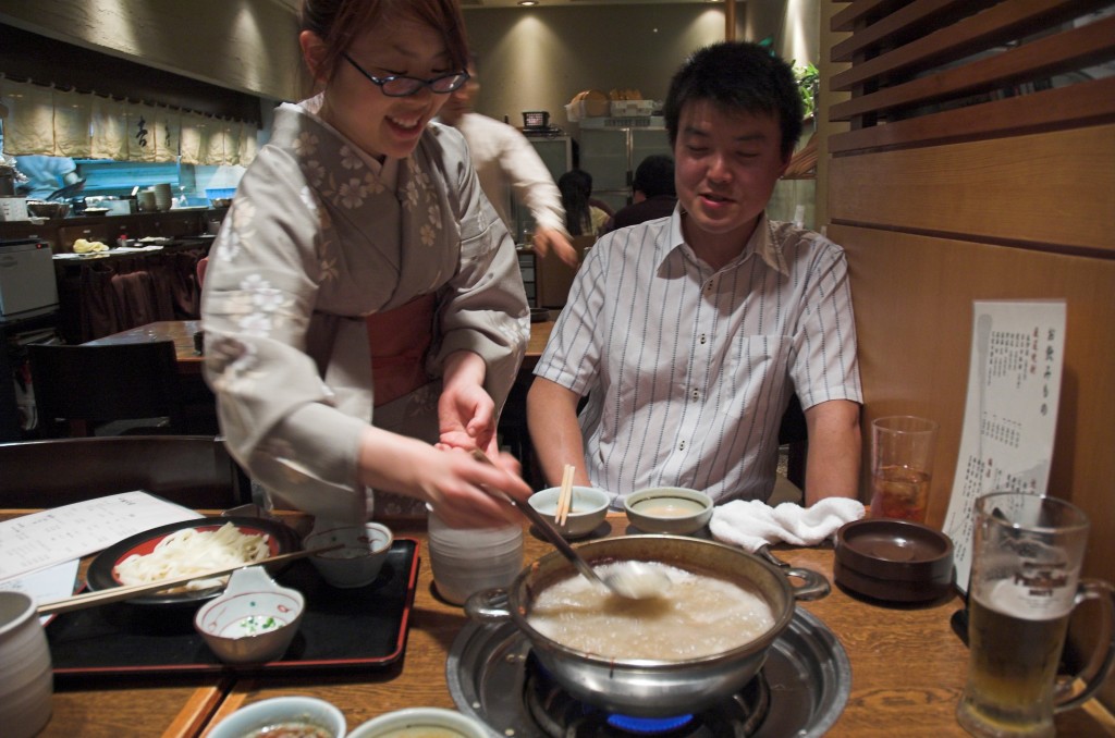 wenig spektakulär untergegangen. Aber trotzdem eine nette Aussicht Shabushabu in unserem Lieblingsrestaurant Als Abschluss des Shabushabu gibt es noch Nudeln, die kurz in der