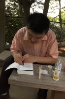 herumzuschleichen Um 19.30 treffe ich in Sengawa wieder Hiko Natürlich darf man im Bad keine Fotos machen, aber schade, dass ich Euch das nicht zeigen kann. Drüben im Live-Foto-Log gibts immerhin noch einen Schnappschuss von der Eingangshalle, in der unter anderem Massagesessel stehen. Bevor man die betritt, zieht man natürlich seine Schuhe aus und schließt sie in einem kleinen Schließfach ein. An einem Automaten ziehen wir eine Eintrittskarte und ein Ticket für ein kleines Handtuch, das man hier für 150 Yen kaufen, aber nicht leihen kann. Wir werfen es nachher trotzdem weg; was soll ich mit einem nassen Handtüchlein im Rucksack? Im Bad gibt es einen Bereich, in dem man sich zunächst reinigt. Und zwar tut man dies im Sitzen auf einem kleinen Hocker, wo man sich mit einer Brause abduschen kann und wo Haarshampoo und Duschgel bereitsteht. Anschließend hat man die Wahl zwischen allerlei Becken mit verschieden warmem Wasser, blubbernde und nicht blubbernde. Auch außen gibt es Badebecken und ein paar Tatami wo man sich an frischer Luft ausruhen kann. Die Handtücher sind übrigens wirklich winzig, kein Vergleich mit dem, was man bei uns so als Duschhandtuch benutzen würde. Die Japaner benutzen sie aber auch anders, insbesondere nicht in erster Linie zum Abtrocknen: Schon von Anfang an wird das Ding nass gemacht. Gleich wenn man sich wäscht, kann man sich damit zum Beispiel den Rücken schrubben. Ansonsten benutzen es viele Japaner, um beim Herumlaufen ein wenig ihre Blöße zu bedecken, etliche laufen aber auch ungeniert nackt rum. Im Bad ist es wohl Tradition, das Handtüchlein zusammengefaltet auf dem Kopf zu tragen. Viele machen das, Hiko nicht. Eine besondere Erwähnung verdient noch die Sauna. Es beginnt damit, dass sie strahlend hell erleuchtet ist, während man bei uns ja eher schummriges Licht kennt. Es gibt fünf oder sechs Stufen, und alles ist von oben bis unten mit Frotteetüchern ausgelegt, auf denen man sitzt. Das Handtüchlein legt man allenfalls über seinen Schritt, oder auch daneben. Alle schauen in die gleiche Richtung – auf einen großen Fernseher. Dort läuft eine dieser völlig dusseligen, unbeschreiblichen japanischen Unterhaltungssendungen. Darunter ein Schild, auf dem steht, dass das Fernsehprogramm vom Bad ausgesucht wird. Die grammatische Konstruktion dafür löst jenes unbeschreibliche Gefühl in mir aus, von dem Jay Rubin in seinem Buch Making Sense of Japanese schreibt, jenes Erstaunen, dass es gelingt, eine solch verschnörkelte Denk- und Ausdrucksweise mit dem eigenen Hirn nachzuvollziehen. Das Fernsehprogramm ist nämlich vom Haus kimeraresaseteitadaiteorimasu, ach, ich erklär das jetzt nicht. Wer Japanisch lernt, wird es nachvollziehen können. kimeta wäre die Form, die man unter Freunden vielleicht benutzen würde. Das hier ist jedenfalls die höflichste Form, die ich je in freier Wildbahn gesehen habe. Übrigens ein gutes Buch das, auch für Leute, die nicht selbst Japanisch lernen. Der Fußmarsch nach dem Bad ist länger, als wir dachten; Hiko hat