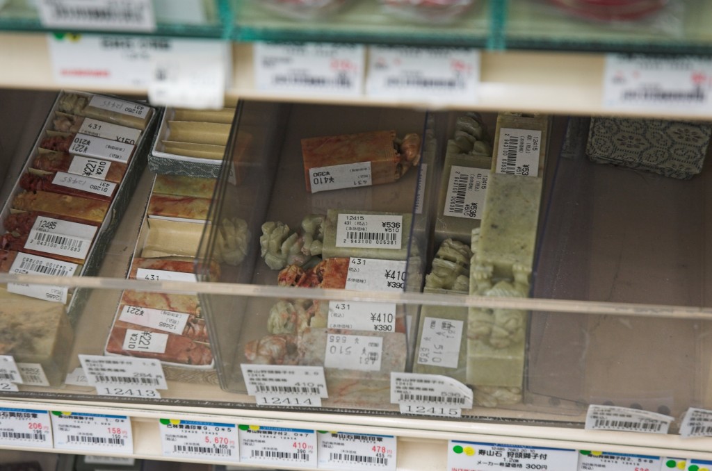 Heute bin ich mit Pamela verabredet, der Schweizerin, die ich vor einigen Jahren in der Sprachschule kennengelernt habe und die in Tokyo lebt. Vorher will mir Chandra aber noch ein Geschäft zeigen, in dem es allerlei Zubehör fürs Kalligraphieren gibt. In der Tat hat der Laden eine riesige Auswahl, angefangen mit